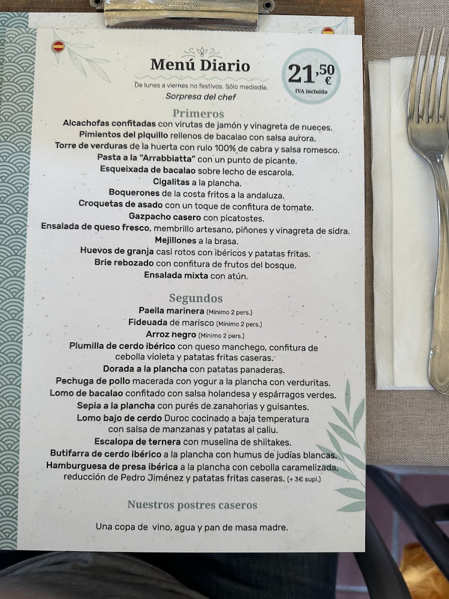 “ After two trains and a 30 minute walk Booth and Madge found themselves at the seaside in Blanes on a very pleasant late March day. The front is lined by many places to eat and drink. This restaurant has an outside area set aside for drinks and snacks. Food served from 1pm. There is a covered eating area plus seating in the main restaurant across the road where aseos can be found. Madge on Vermouth, Boothroyd on Moritz beer. Crisps, olives and patatas bravas as tapas. ”